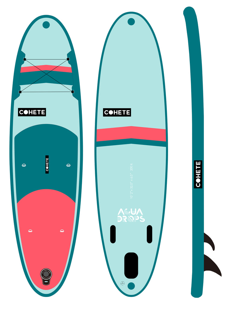 The AQUA DROPS is the ideal inflatable SUP for paddling expeditions weather you’re at the beach, near a river or a lake. The AQUA DROPS is the ideal SUP for paddlers who are looking for an adventure. Features single PVC iSUP technology which has been developed to maximize durability and increase air pressure to 15 psi. The inner core is made of nylon drop stitch material and a high pressure chamber of a max pressure 15 psi.