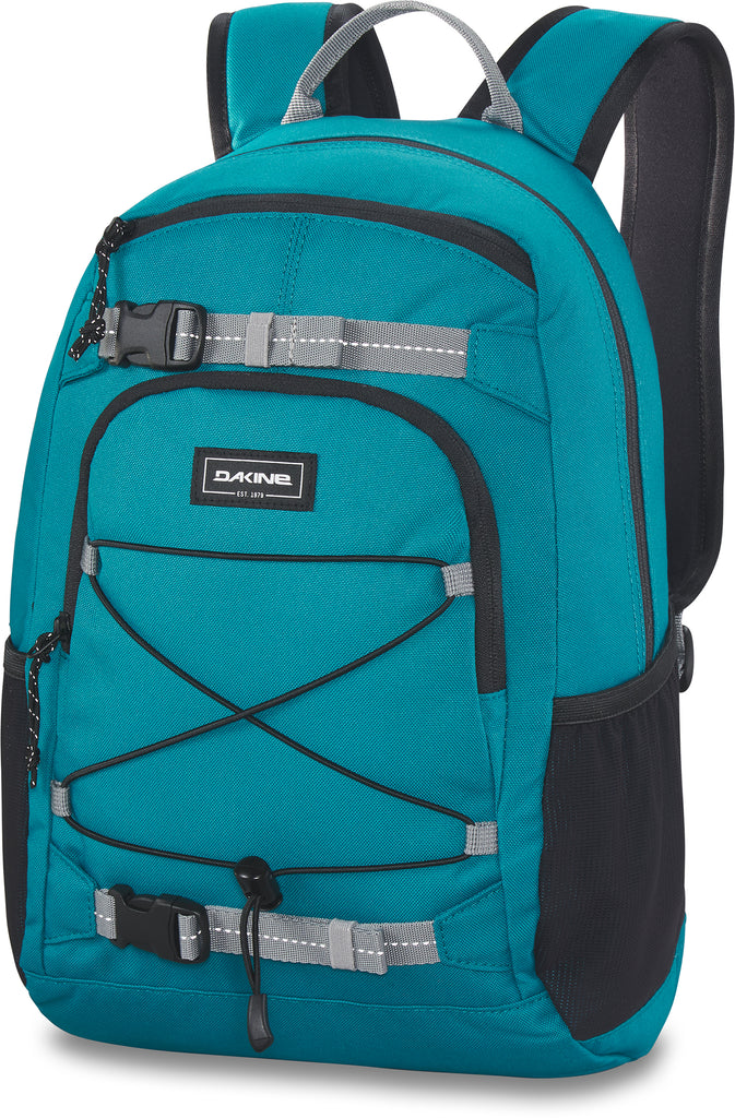 Get back to school in style with the Dakine Grom. This thoughtfully designed kids' sized backpack features a lower 13L (790 cubic inch) volume for lighter loads, plus safety features including reflective details and an easily accessed safety whistle on the adjustable sternum strap. An external bungee strap holds additional layers, while dual mesh side pockets hold water bottles, snacks, or other quick access items.